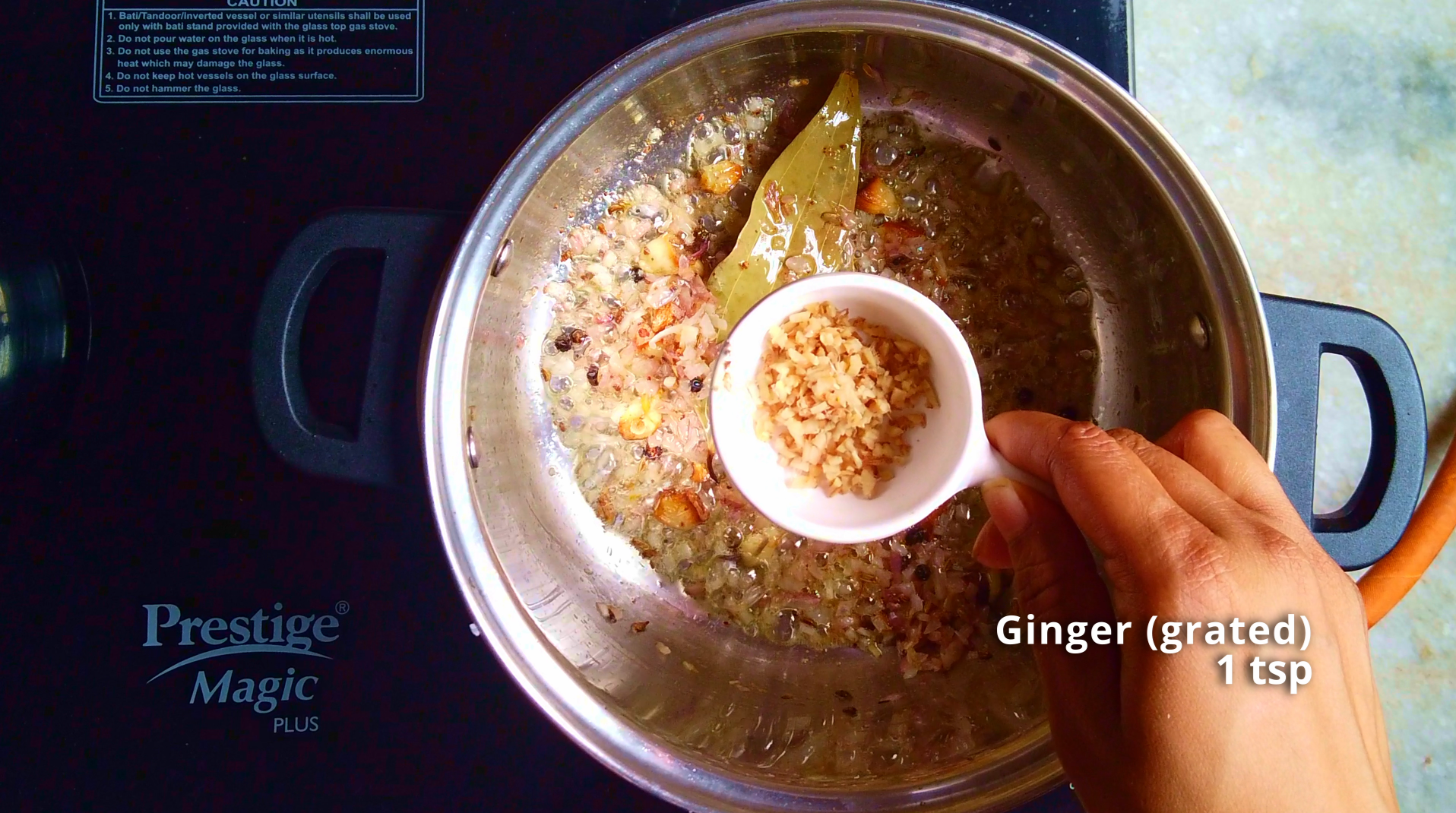 - Step 10: Then add roasted garlic and fry for few minutes. Add freshly grated nutmeg and grated ginger, sauté for 2-3 minutes.