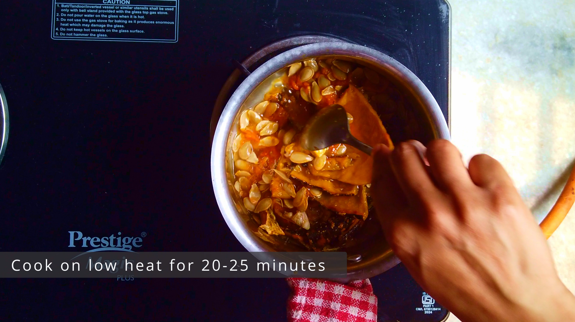 - Step 5: In a saucepan, combine reserved seeds, bay leaf, black peppercorn water, roasted pumpkin skin and cook on low heat for 20-25 minutes.