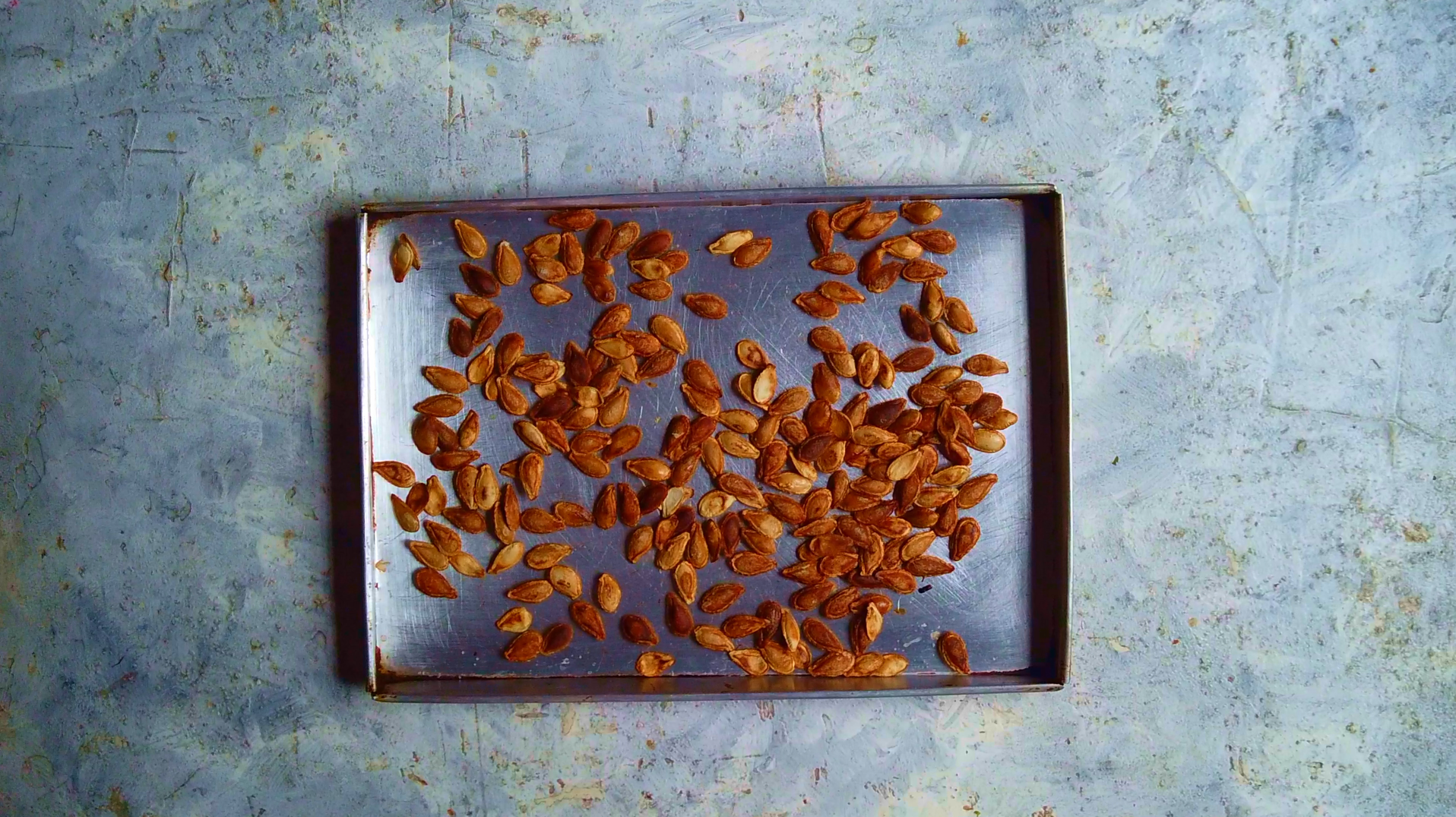 - Step 7: Toss the seeds with a little olive oil and a sprinkle of salt, toss to coat. Arrange the seeds in a single layer. Roast @150°C for 13-16 minutes, until the seeds are fragrant and toasty.
