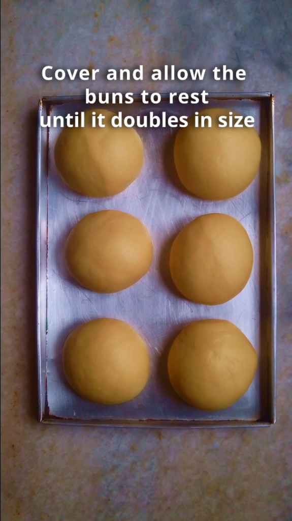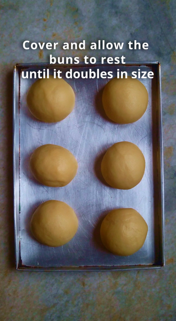 - Step 6: Once shaped, arrange the buns on a baking tray. Cover and allow the buns to rest for approximately 45-60 minutes or until doubles in size again.