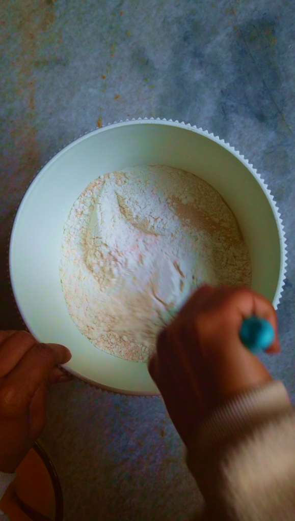 - Step 2: In a large mixing bowl or in a bowl of stand mixture combine flour and yeast, stir to combine.