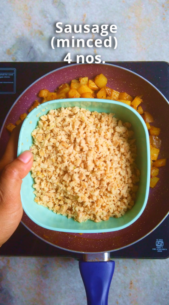 - Step 3: Then add the minced sausage and cook for 5-6 minutes on medium heat. Remove the pan from heat.