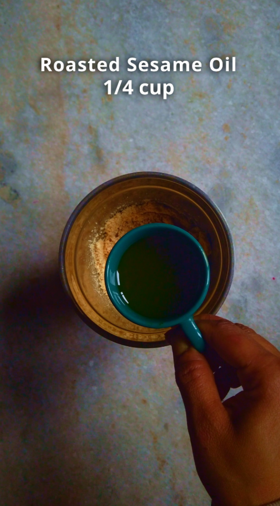 • Step 3: Then add sesame oil and blend until well combined and smooth.