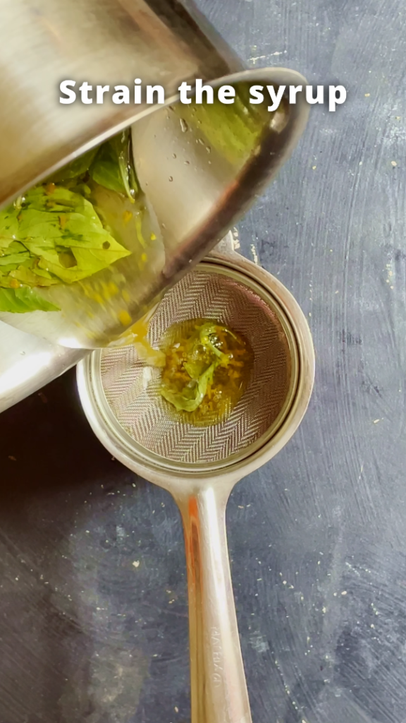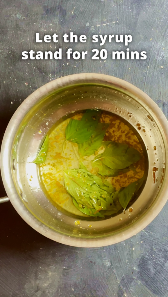 - Step 2: Let the syrup stand for 20 minutes, until cooled to room temperature. Once cooled strain the syrup and keep aside.