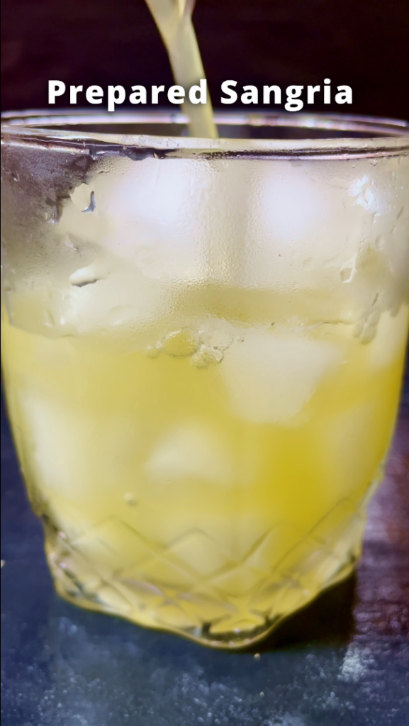 - Step 4: Pour the sangria into a ice filled glass, top with club soda.