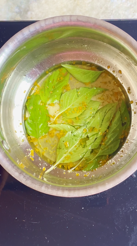 - Step 1: In a saucepan, combine the water and sugar, bring to a boil, stirring to dissolve the sugar. Turn off the heat and add orange zest, lemon zest and Thai basils.